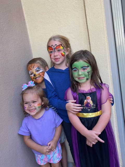 Since the Children’s activity center is closed (it’s AMAZING when it’s open for the kids), we came up with our own activities for the children. We had kids crafts and things for them to make, but the biggest HIT for them all week was Face painting. We did it on the deck so there were no messy accidents. Just a thought — Easy smeazy and a winner!