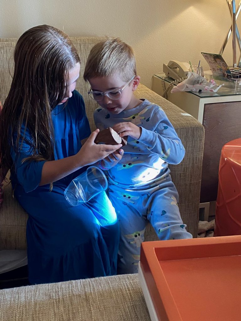 Secret Cousins Exchanging “Secret Cousins” gifts each day was the highlight of each morning. The excitement for this even surprised me — the kids LOVED giving the gifts “sneakily” to each others so they didn’t know who they were from. Before we left on vacation, we simply drew names out of a bowl and assigned each child that was 2-years or older a “secret cousin”. They (the parents) were asked to have the child help pick out a simple inexpensive gift to give each day of our vacation. Some of them were things like sand box toys, pool toy, something they made like a picture or a treasure box like the one shown in the picture above. The last night, we announced who each “secret cousin” was, and they each received a hug and a thank you from the recipient. You could tell the children really felt good. And it’s the one activity all the kids requested that we do it each year. The key is keeping it secret until the end.