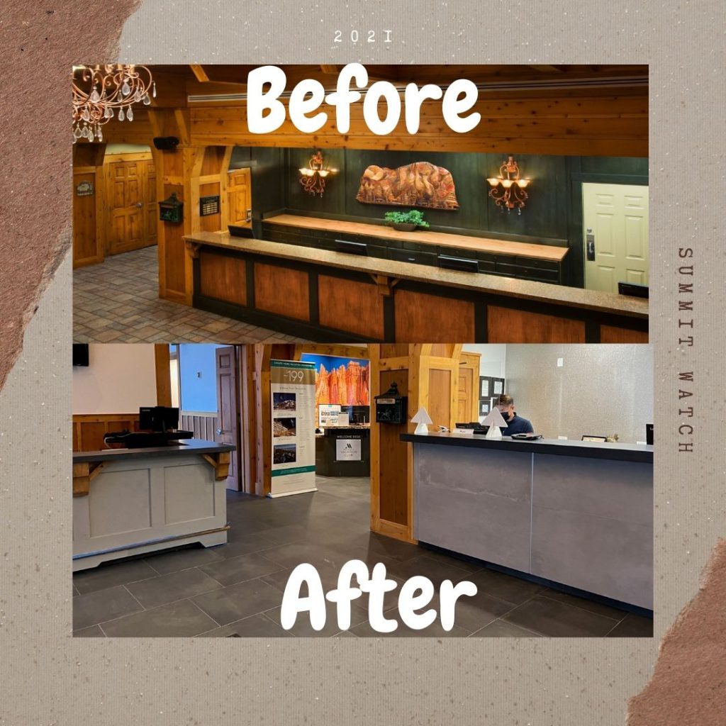This renovation was scheduled to be completed November 9th. These pictures were taken on November 19th. It was their first full day in their new lobby. Up until then, the temporary lobby was located in the parking garage. The Marriott staff liked their new lobby saying it gave them a little more room. In comparing the before and after pictures, it appears the counter might be a little higher, but I don’t see much improved space. The filing cabinet behind the counter is still there. In any event, I’m sure it looks better now, and I LOVE the front door!! That will be very nice.