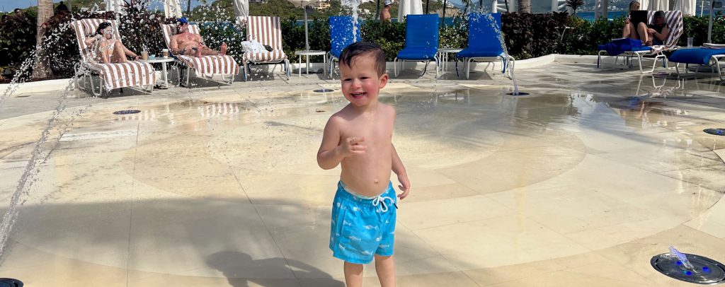 A BIG hit was the splash pad for our 2-year old grandson. Again, there was never another child at the splash pad while we were there. The material the children ran on at the splash pad (they never can walk here) was soft and rubbery so it wasn’t slippery at all.