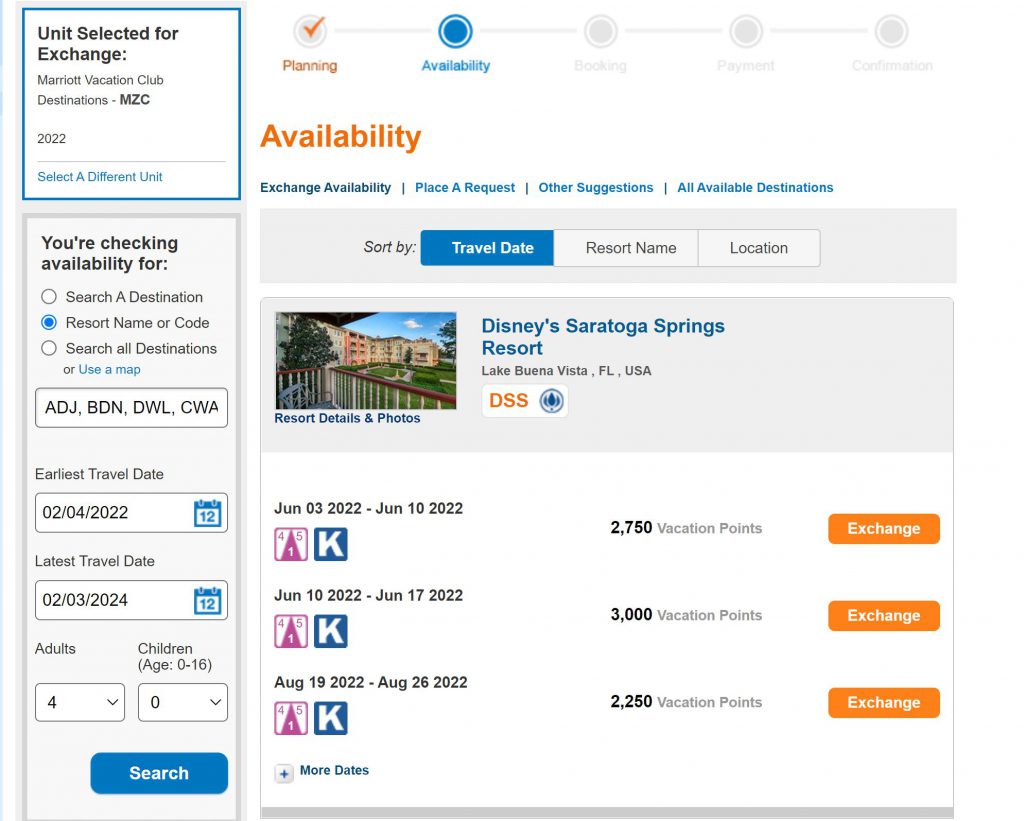 Don’t think that Saratoga Springs is a “disappointing” resort because it has consistently shown availability the last few weeks. I’ve read the reviews, and it looks comparable to many MVC resorts. It’s an “Interval International Elite Level” resort — the same level as Marriott’s Cypress Harbour and Marriott’s Grande Vista which are very popular MVC resorts in the same area. It is near Disney Springs in WDW and very convenient if doing a Walt Disney World vacation.