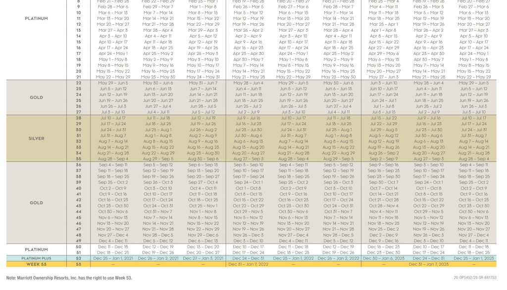 Now let’s look at the Points Calendar for this resort.  Points owners use this calendar to know how many Club Points are required to make a reservation for specific dates. By using the dates eligible to reserve from the Seasonal Calendar and comparing the number of Club Points required to reserve for each date group in the Points Calendar, you can see a big variance.  There are actually FOUR different Club Point values in this example within the dates allowed in the Gold group of the Seasonal Calendar – 1950 points to 4000 Club Points – ALL available to reserve during the Gold Season!!  What an obvious way to see what date is more valuable to reserve – the more points required to reserve, the more value that date is!!